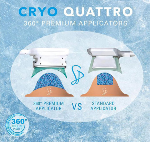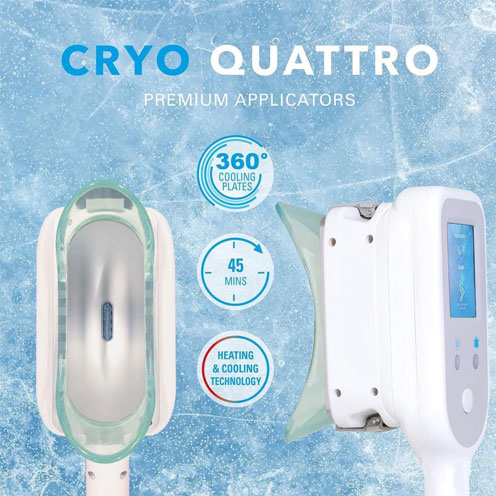 The Cryo Quattro is fully equipped with a variety of easily changeable applicator attachments. You will receive 12 attachments in total (4 x small, 4 x medium, 4 x large). This prevents you from having to purchase further applicators in the future and also gives you the versatility to effectively treat any 4 target areas in one session.